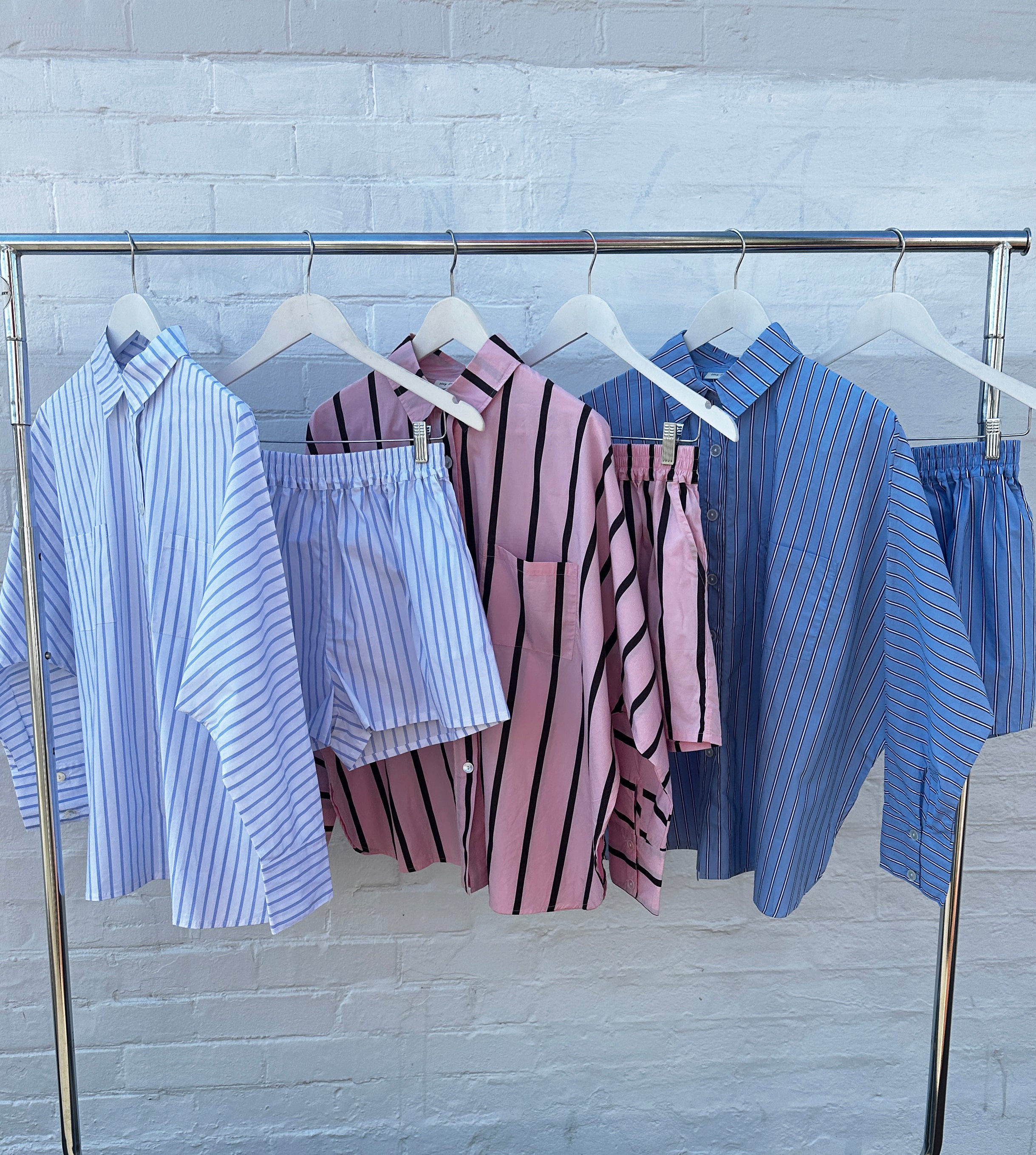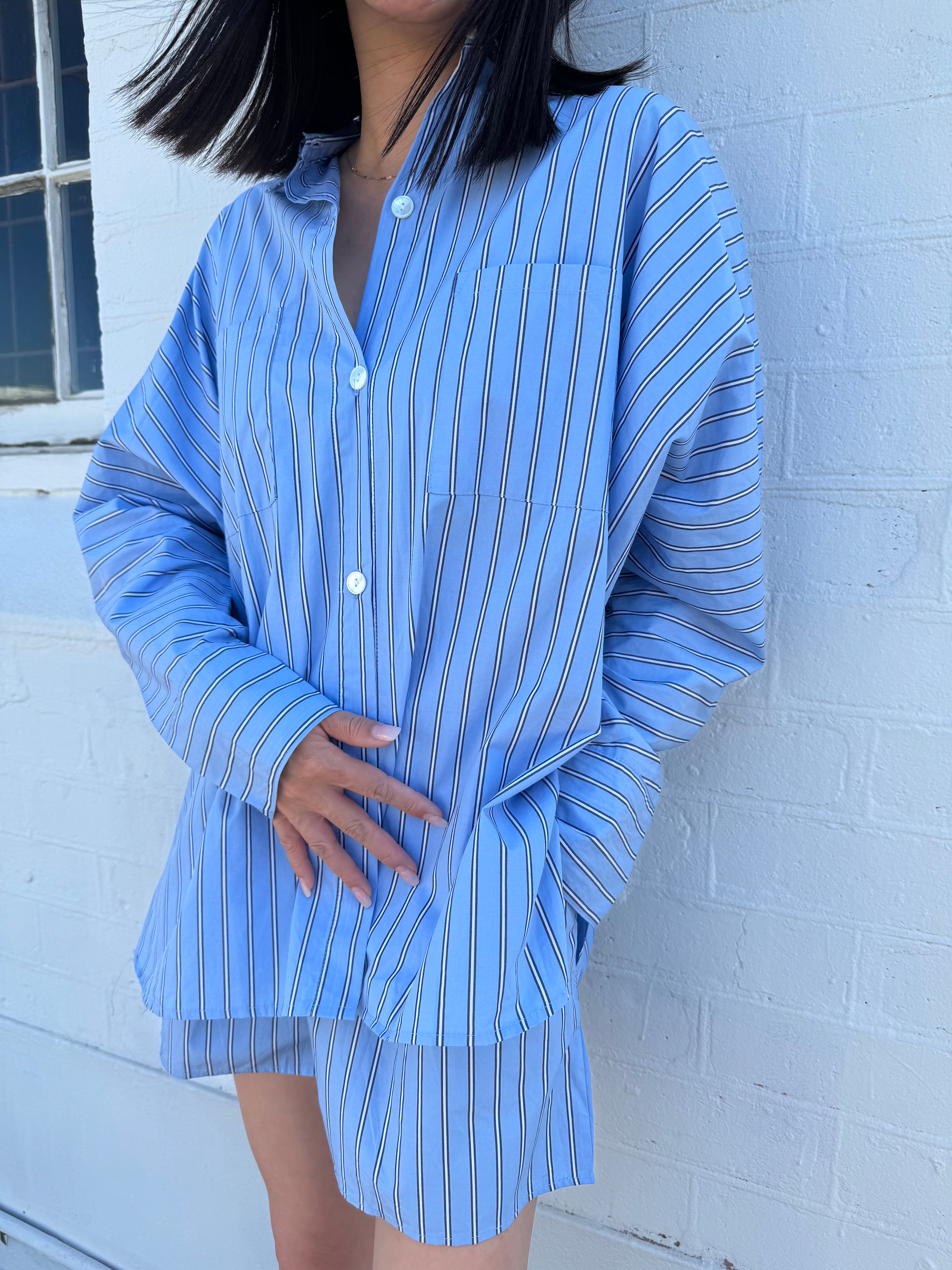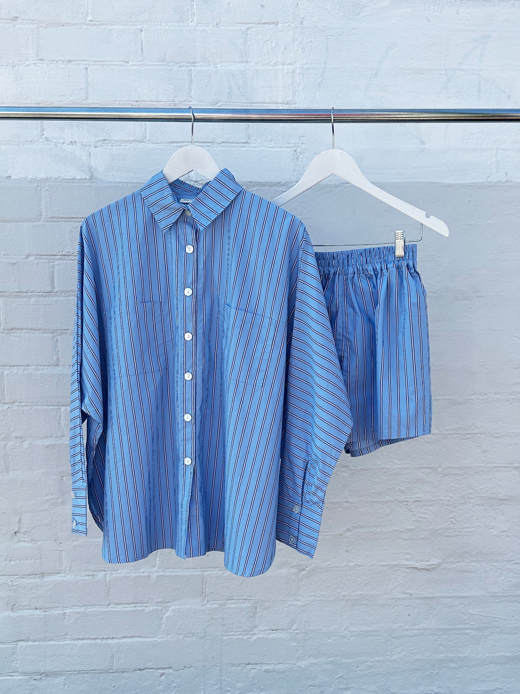 Women's Isla Stripe Cotton Set - Blue/White/Navy Stripe