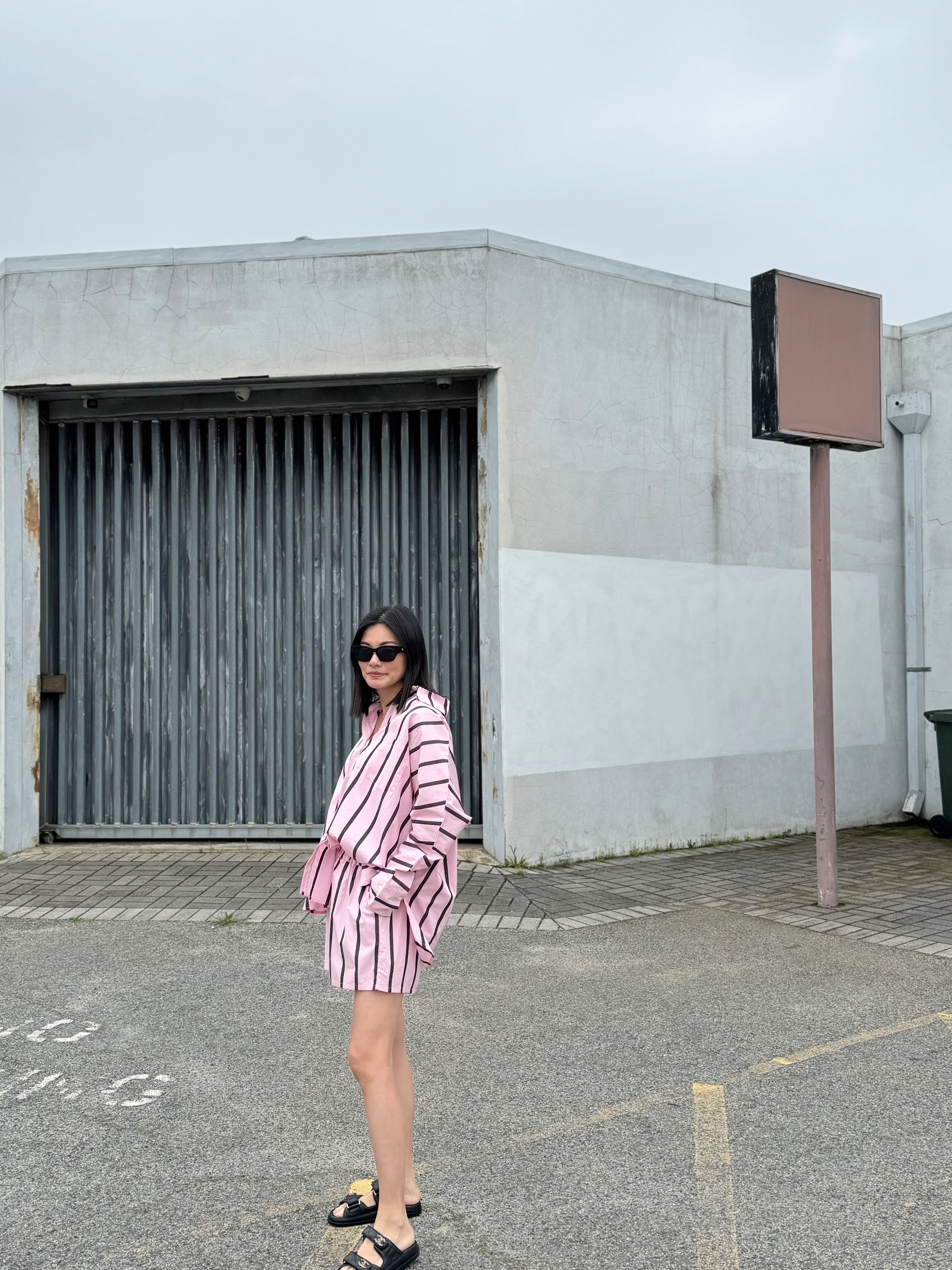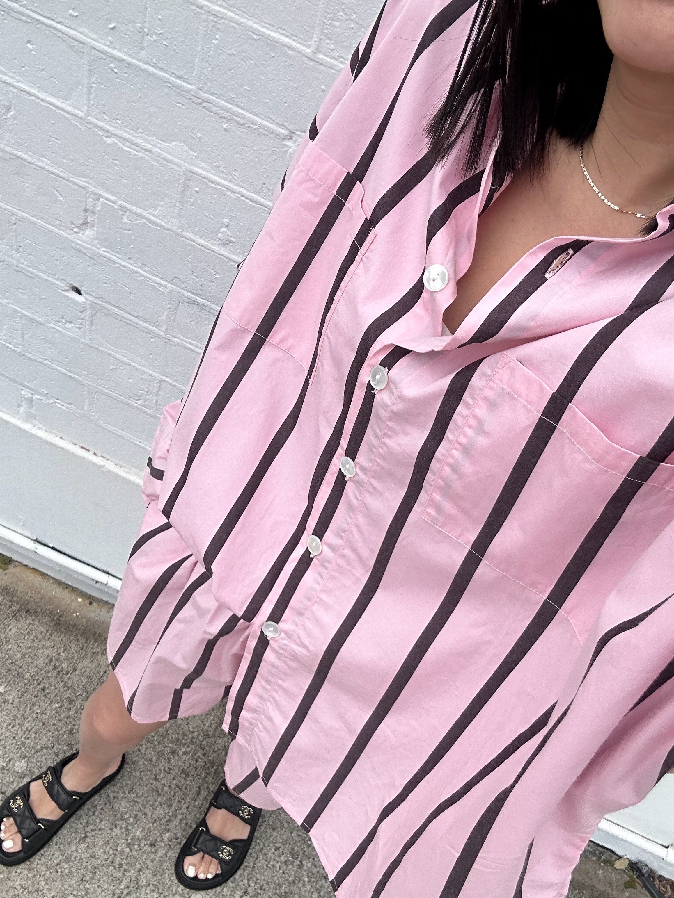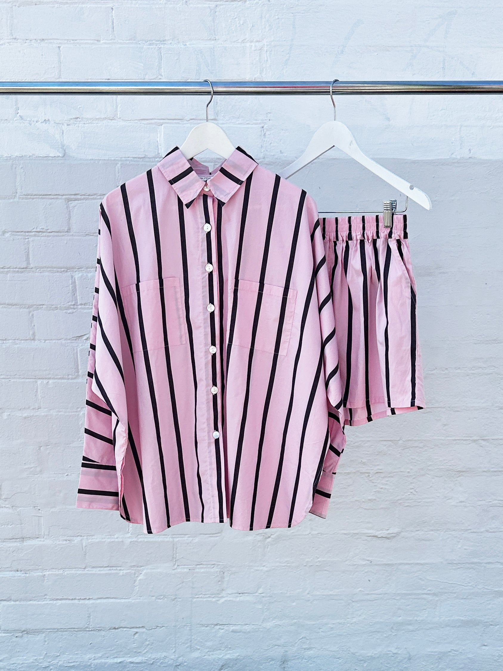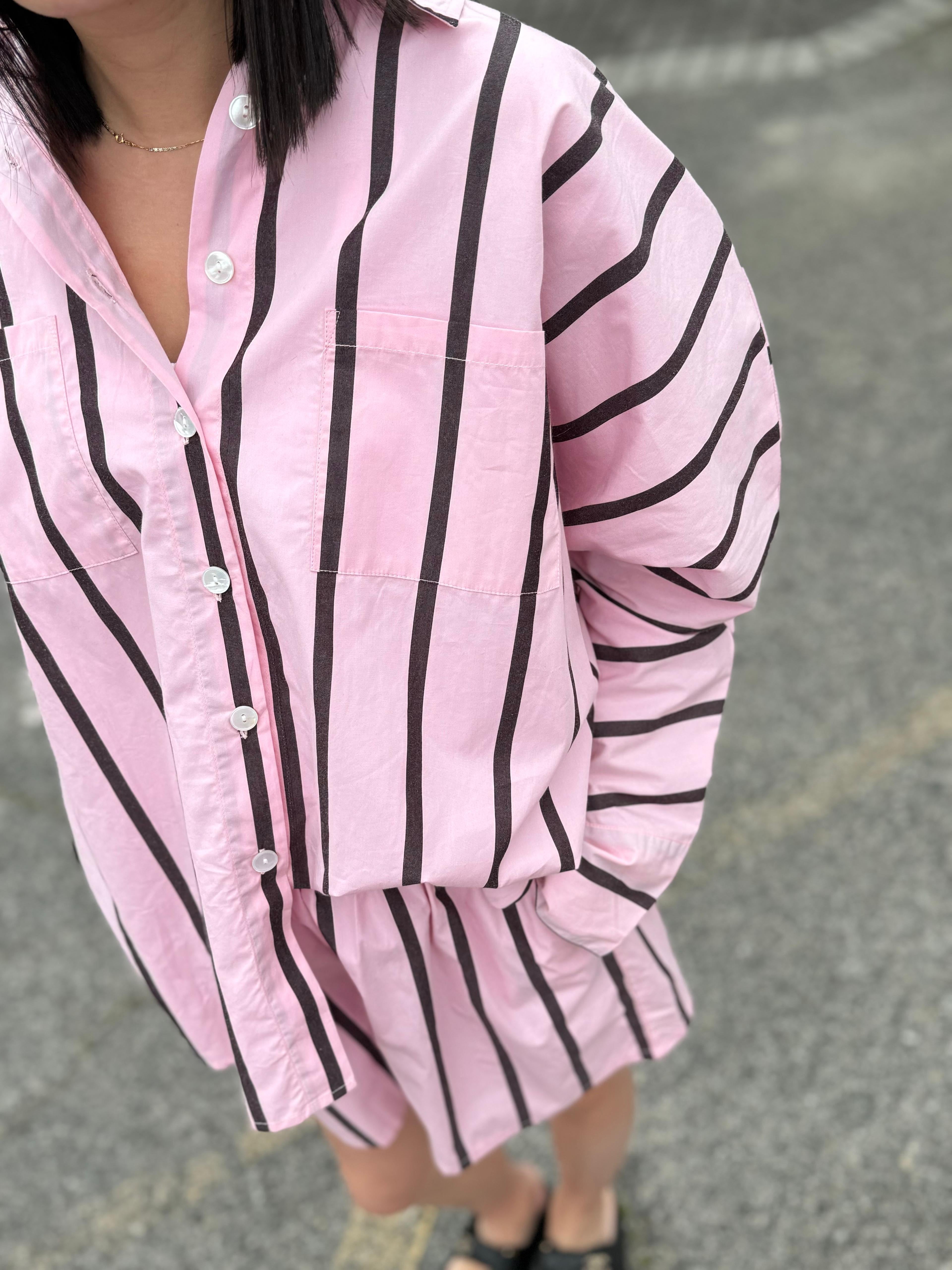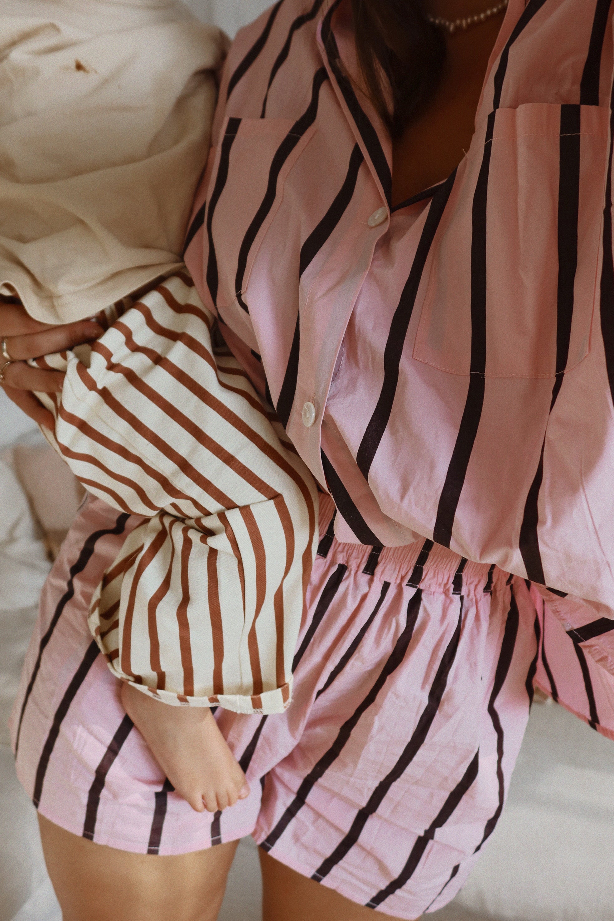 Women's Isla Stripe Cotton Set - Pink/Chocolate Stripe