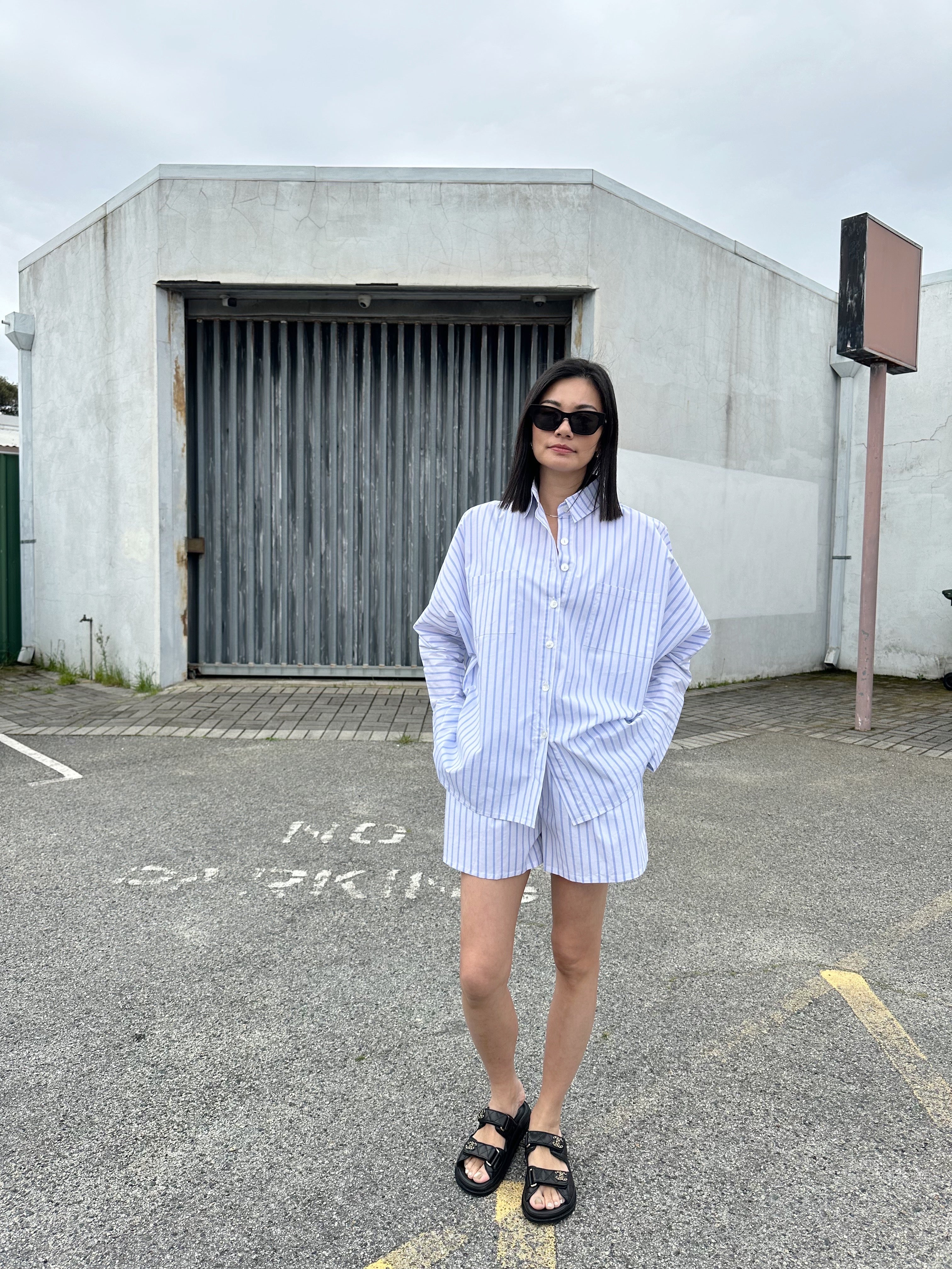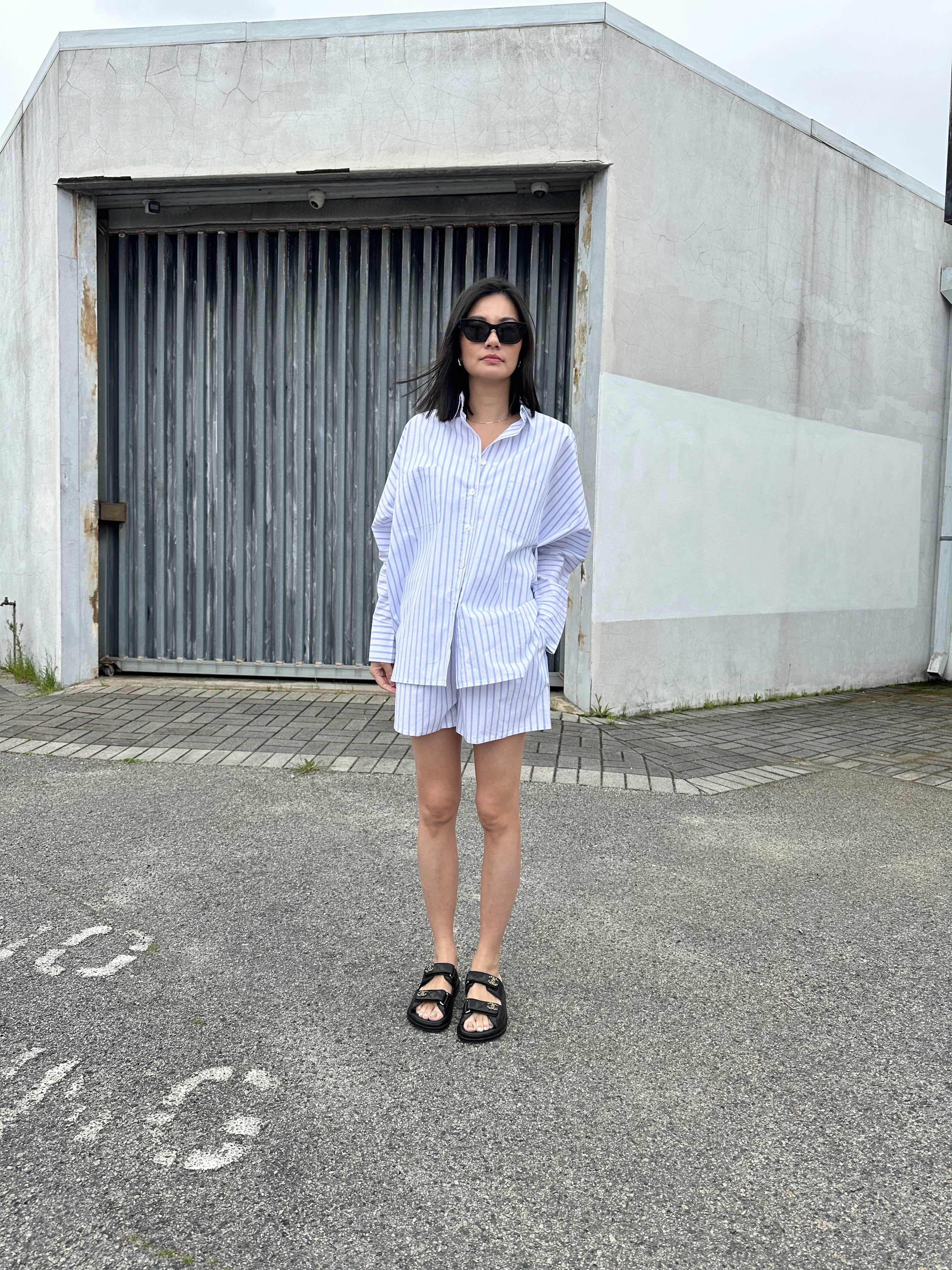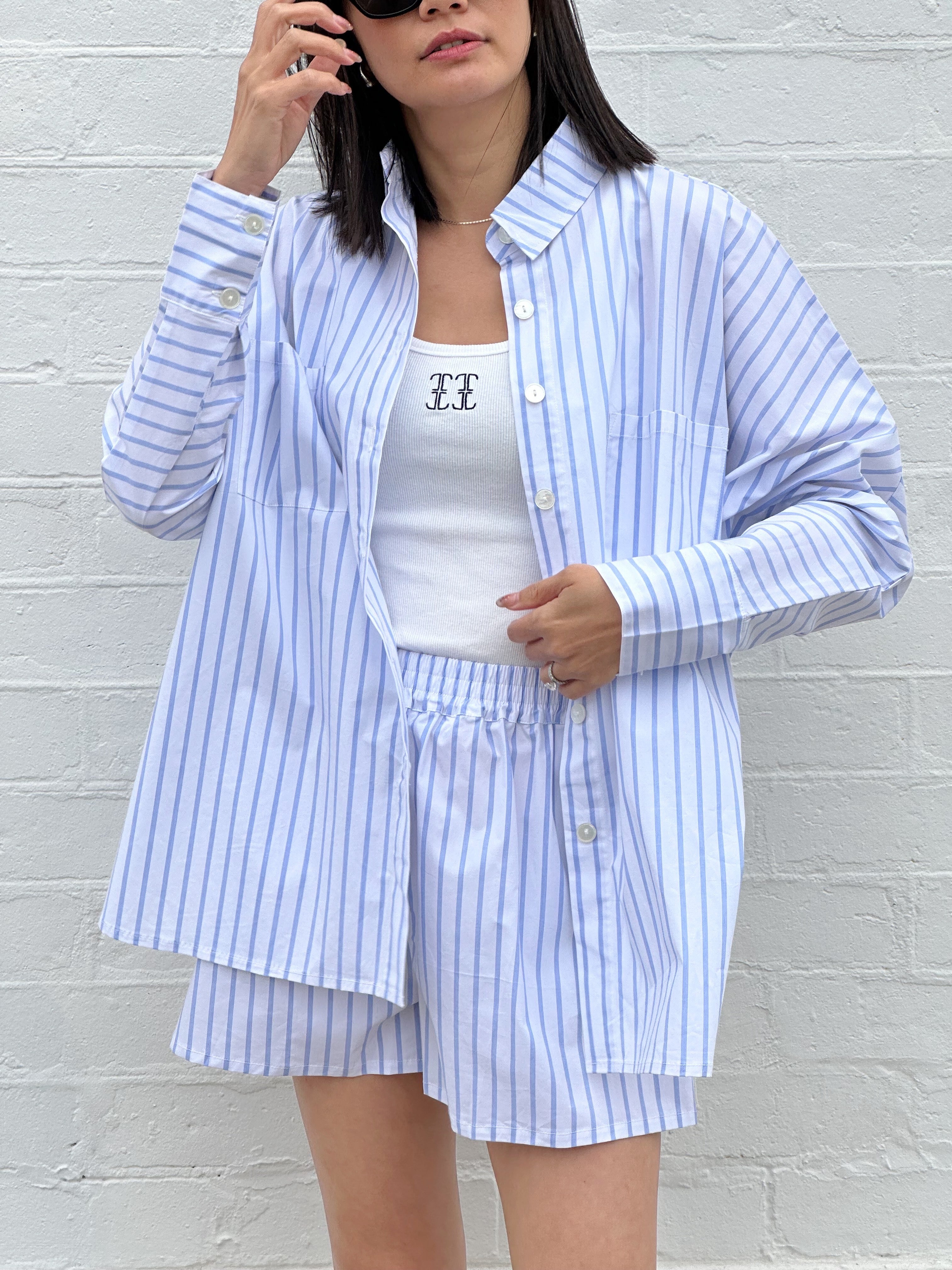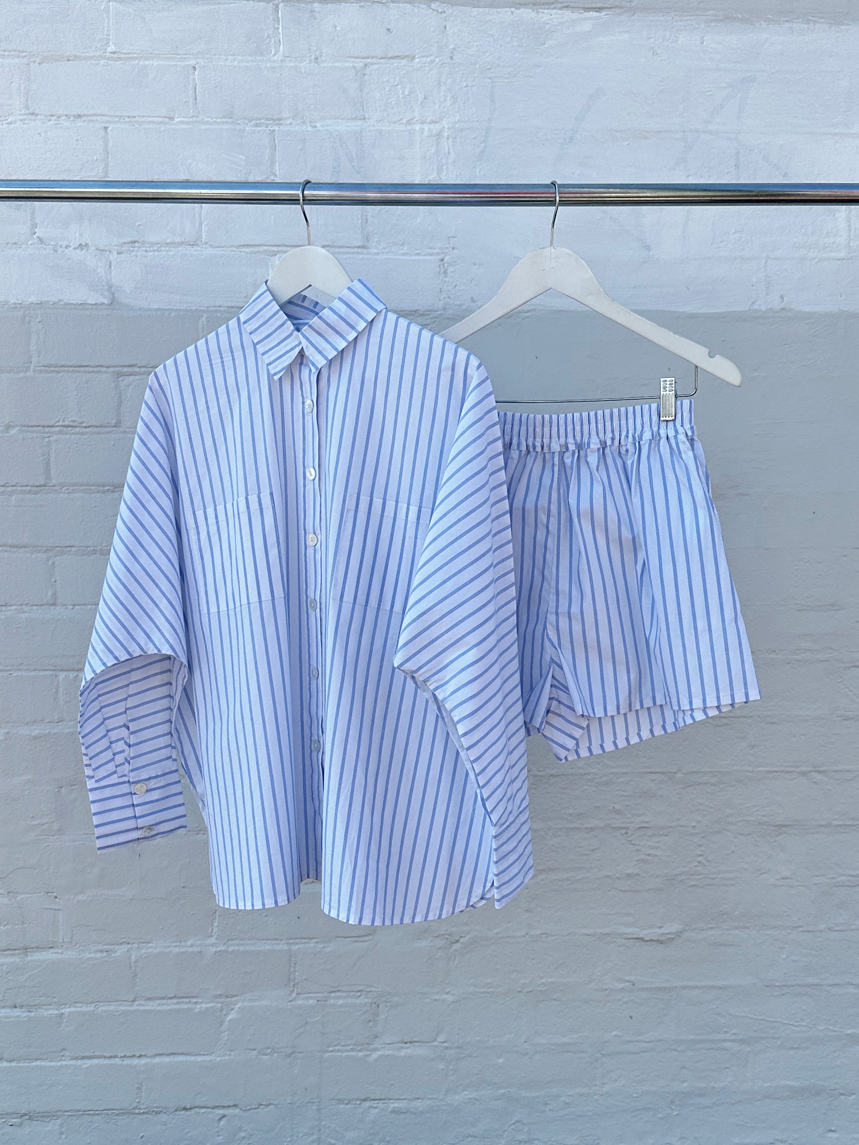 Women's Isla Stripe Cotton Set - White/Blue Stripe