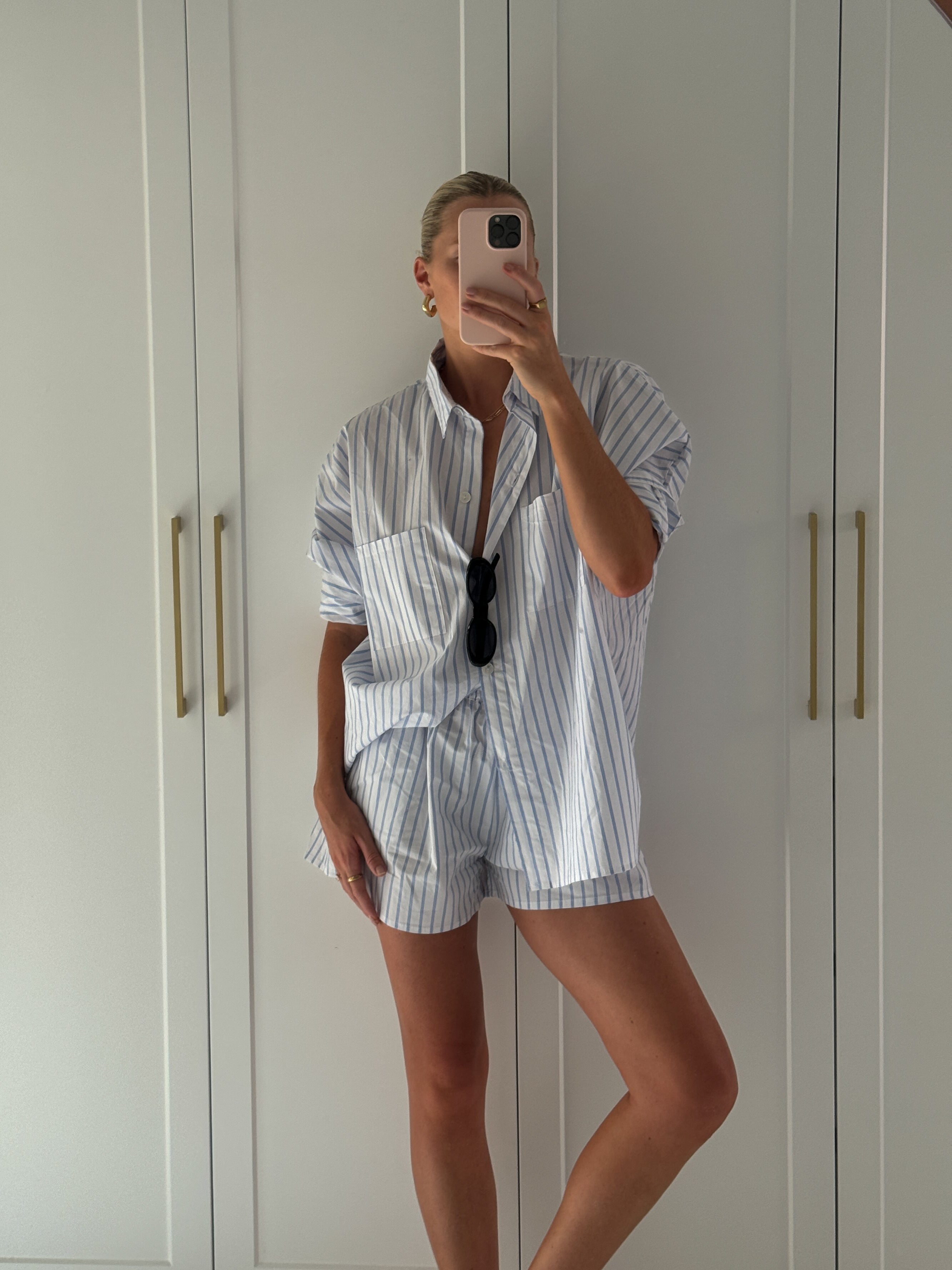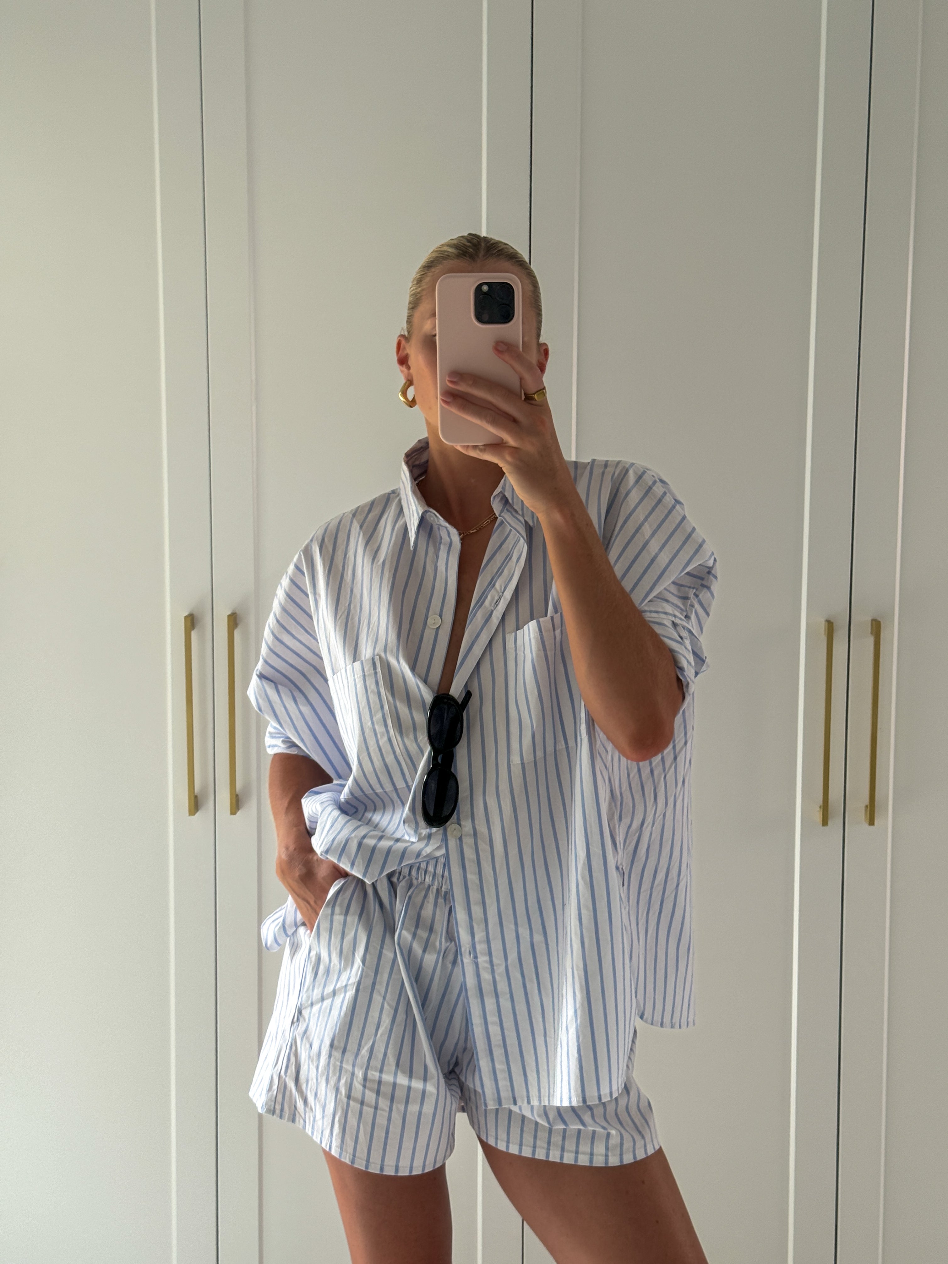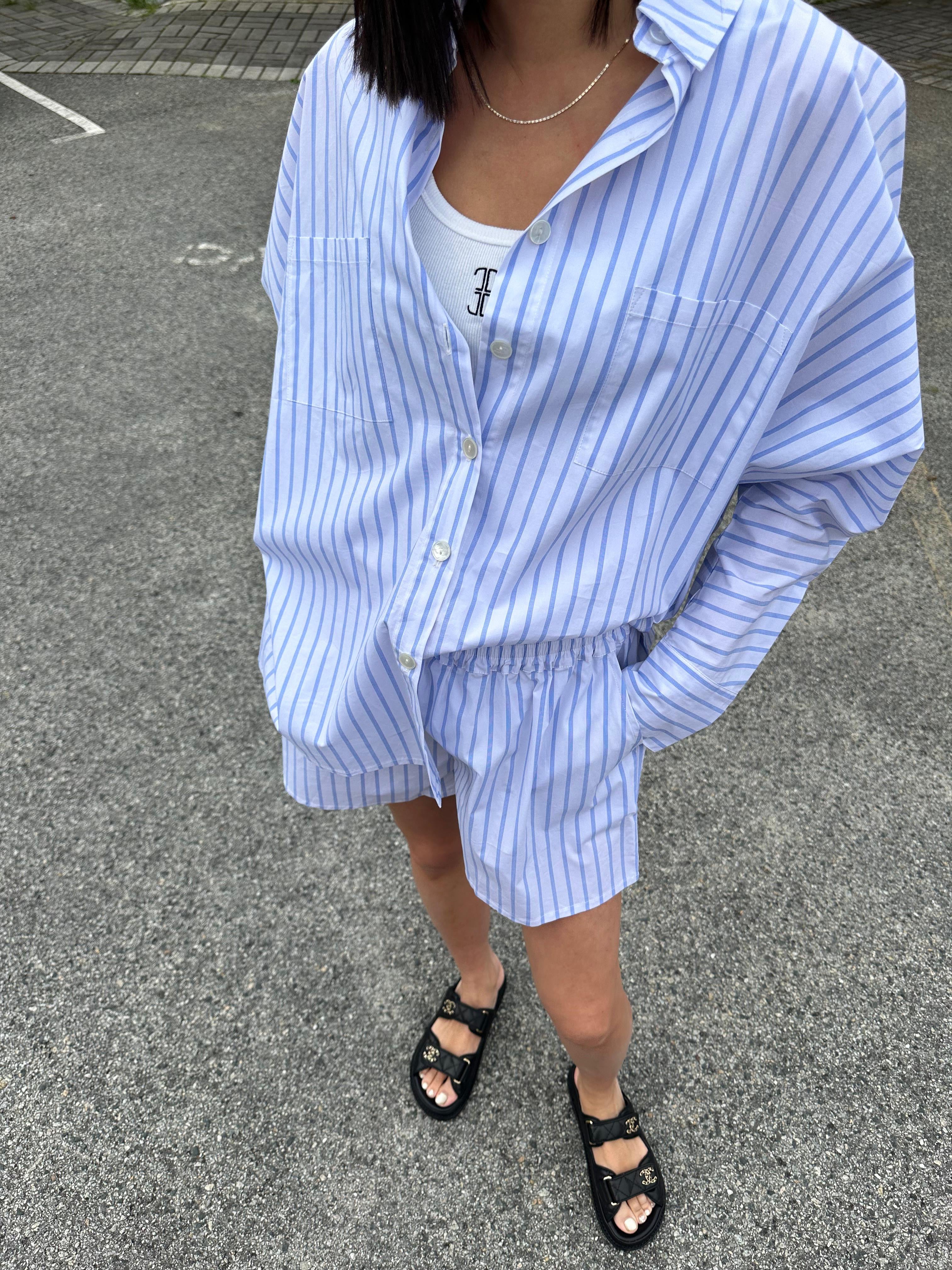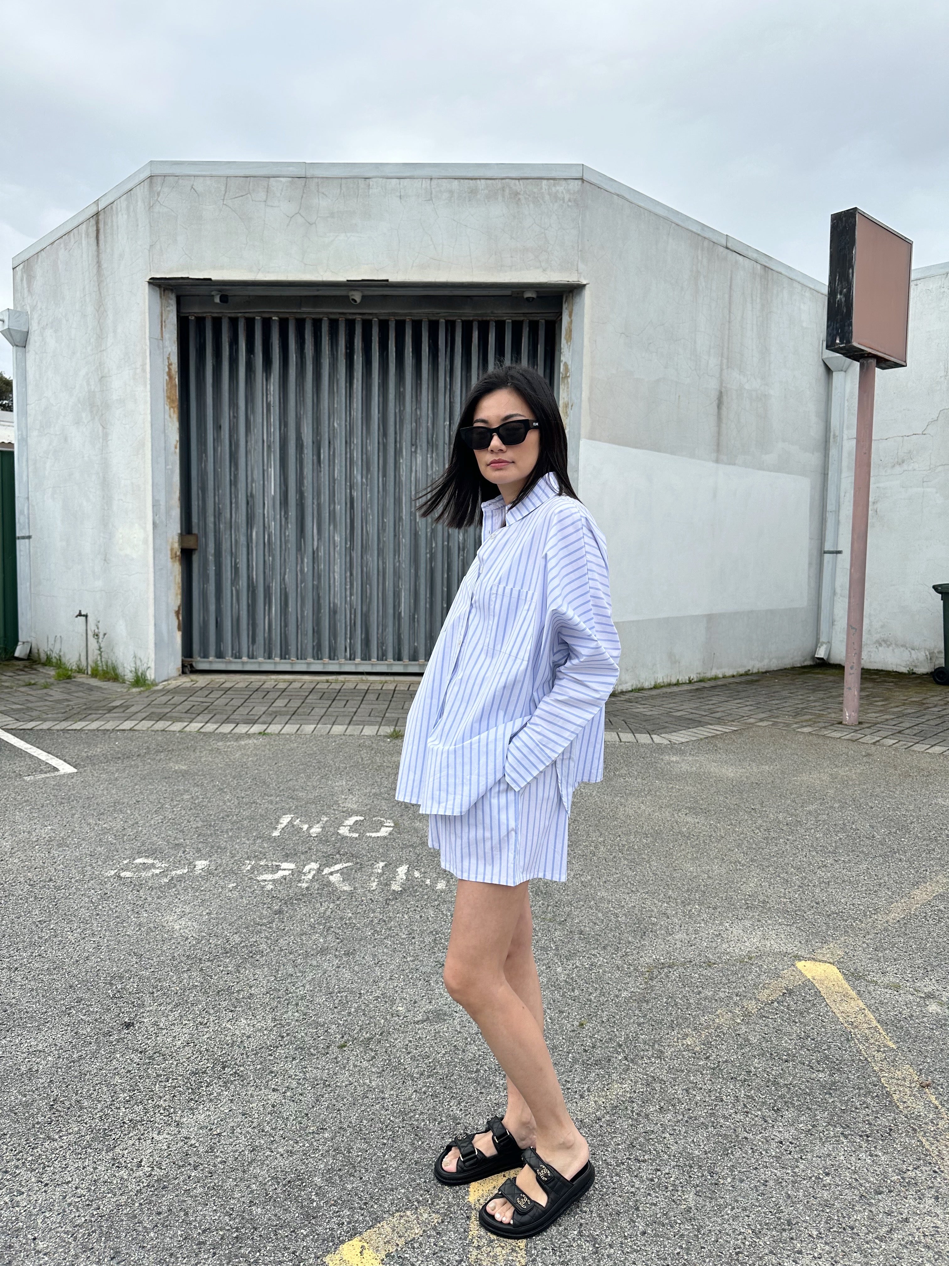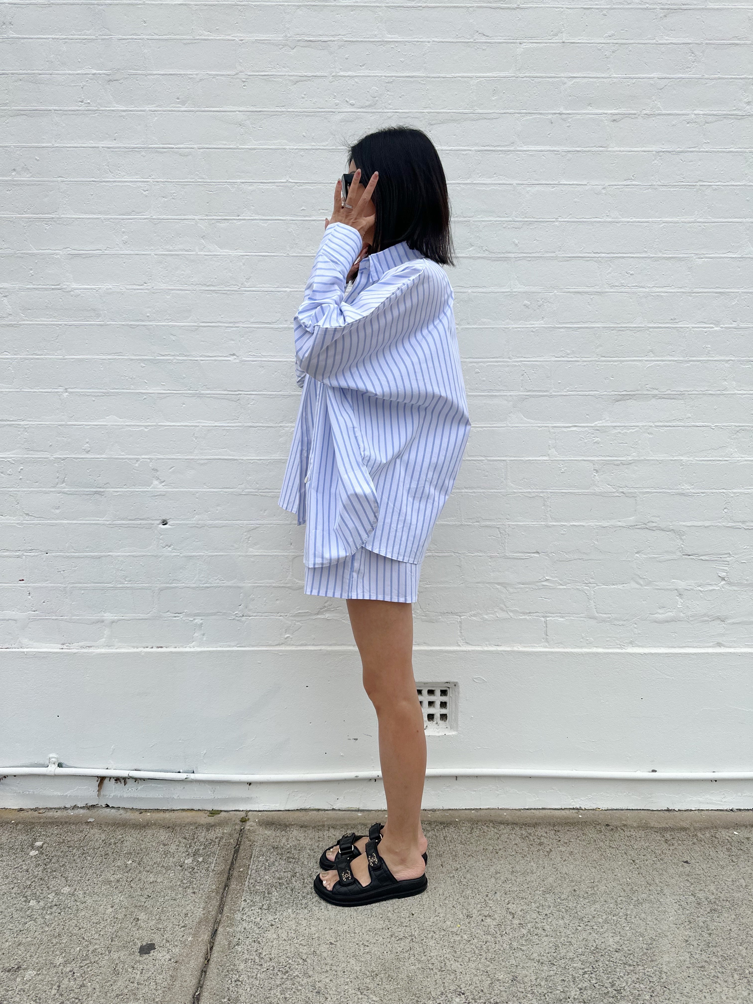 Women's Isla Stripe Cotton Set - White/Blue Stripe