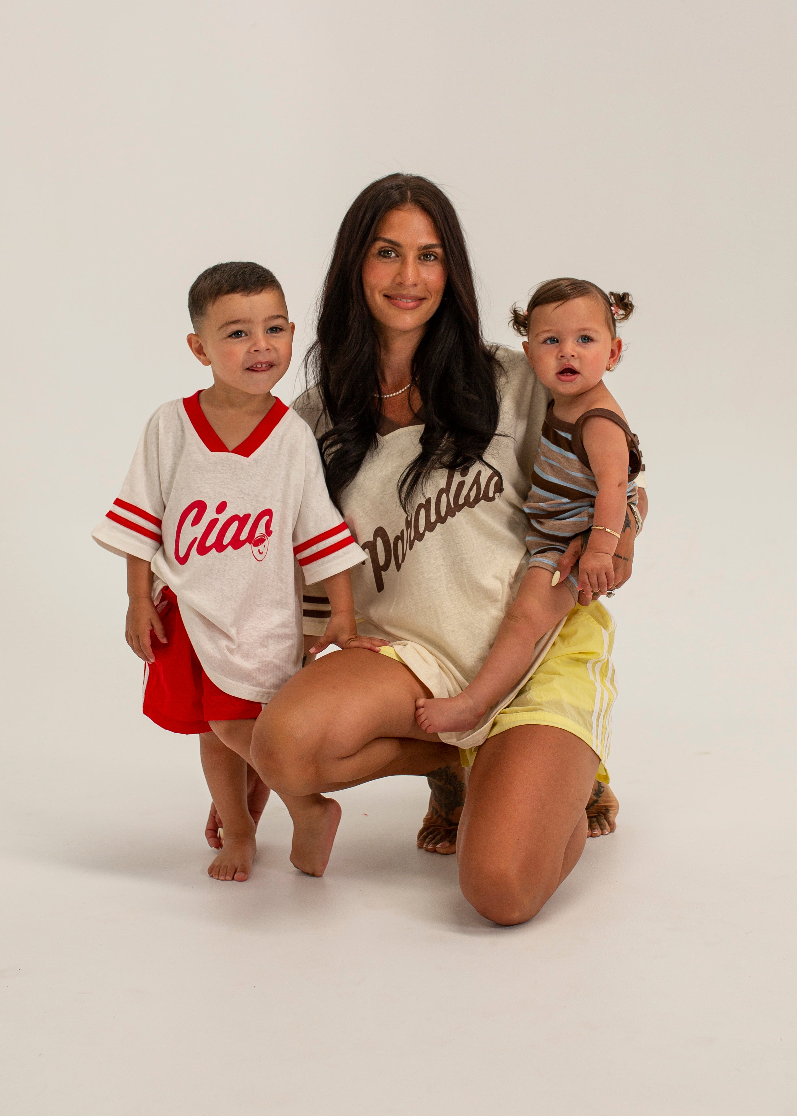 Stevie Terry Towelling Dress - Powder Blue/Red (ONLINE EXCLUSIVE)