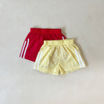 Match with your mini in the Women's Sicily Waterproof Shorts in Butter Yellow/White