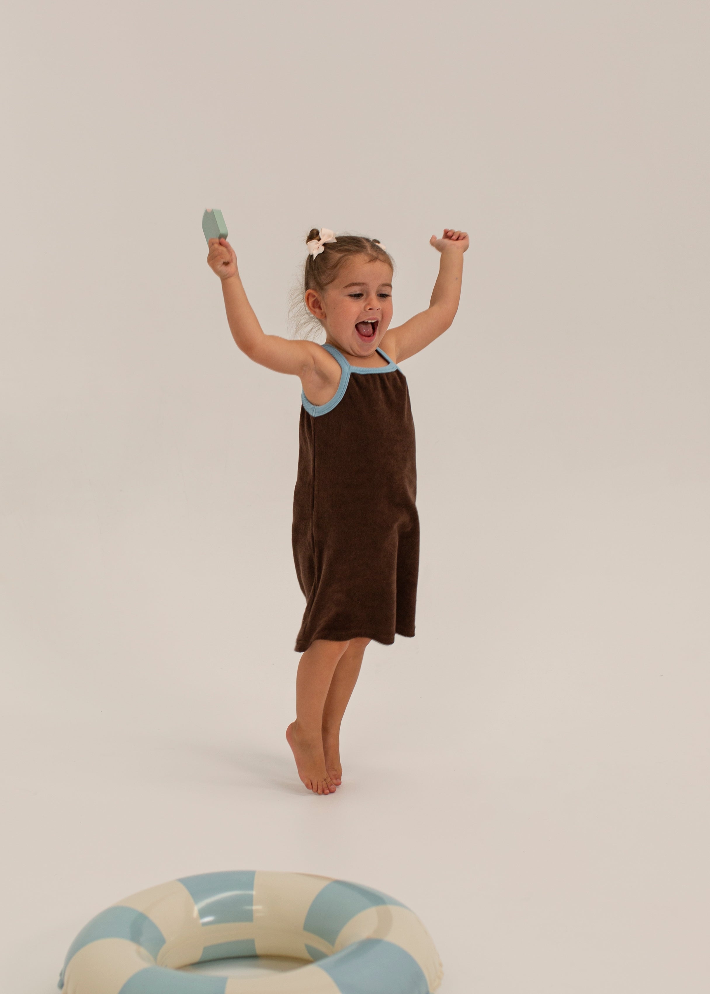 Stevie Terry Towelling Dress - Dark Chocolate/Powder Blue