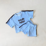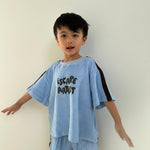 Featuring a fun “escape artist” print, sporty contrast stripes, and a relaxed oversized fit, this set keeps kids cool and comfy. The matching shorts include an elastic waistband for easy pull-on wear.