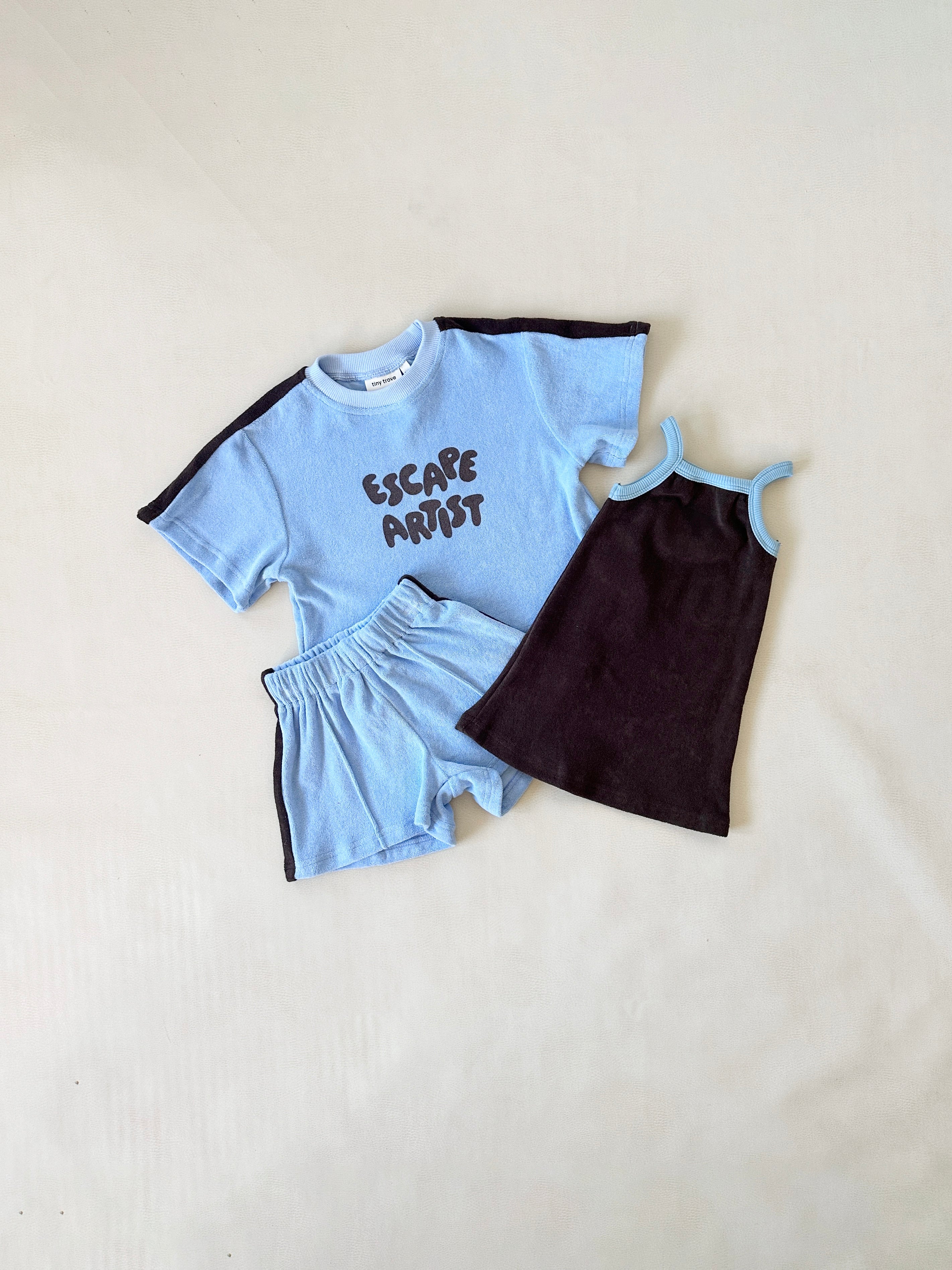 Made for kid you're running after on those hot summer days, the Wes Terry Towelling Set is your little one’s go-to summer outfit. Crafted from 100% cotton terry towelling, it’s soft, breathable, and perfect for beach trips or warm-weather play.
