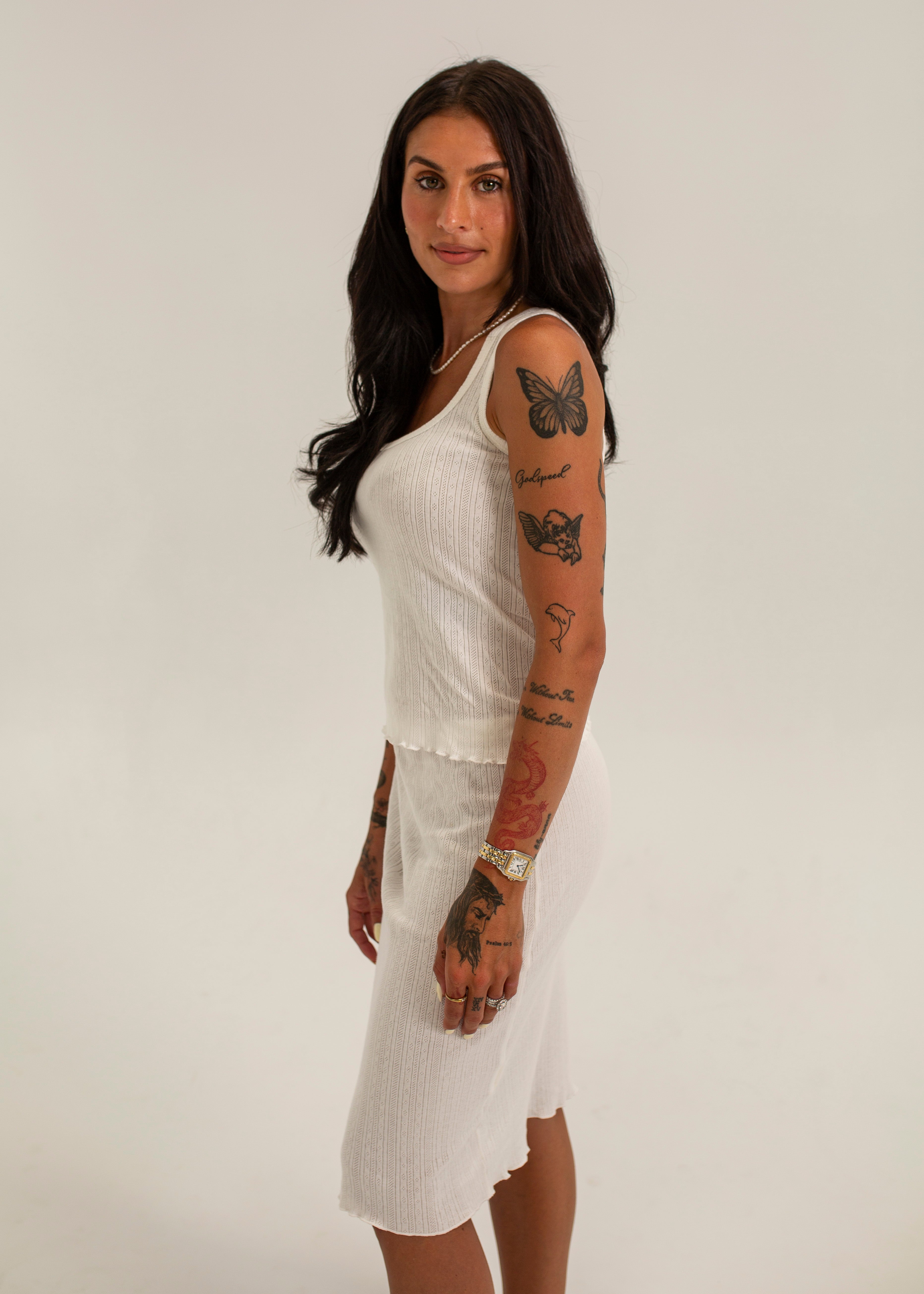 Shop the matching top - Women's Lily Cotton Rib Pointelle Tank Top in White