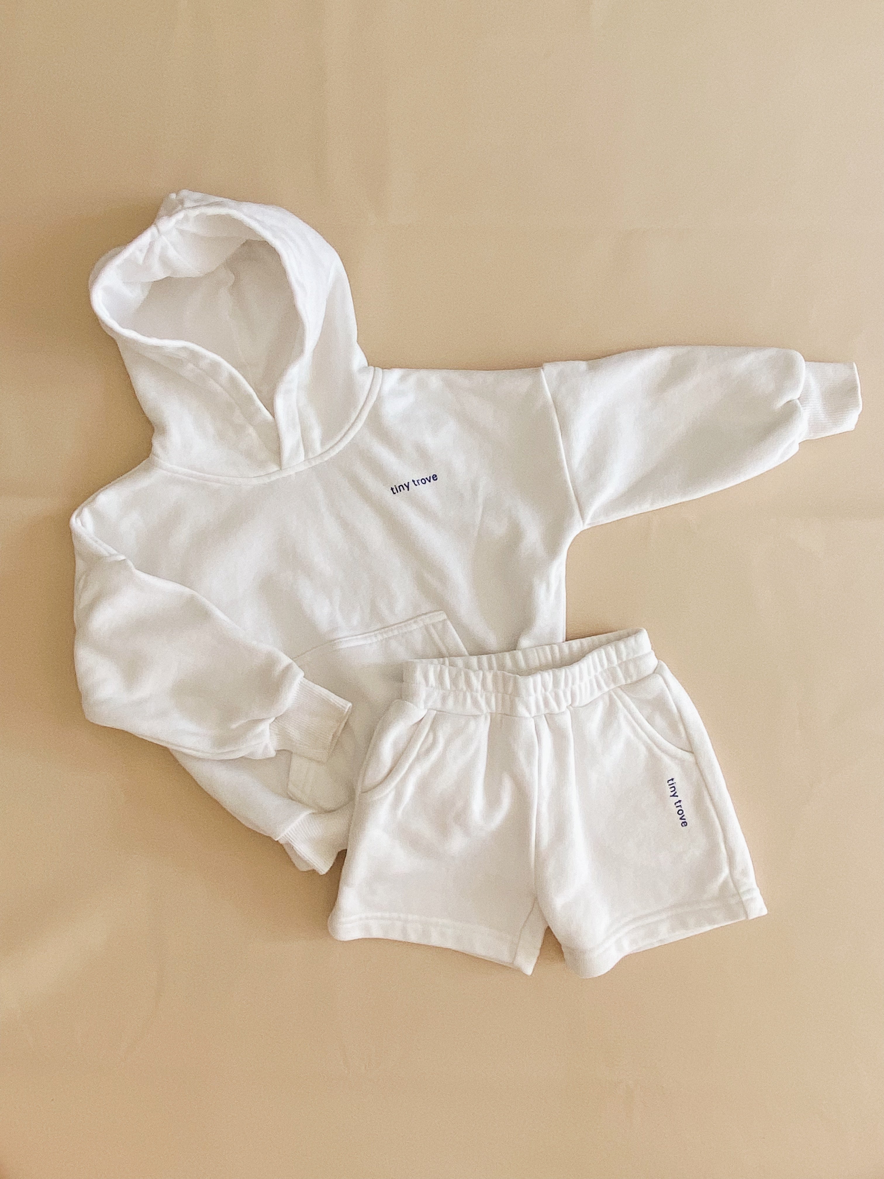Pair back with the matching Rumi Logo Hoodie Shorts in Milk