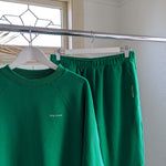 Pants: Elasticated waistband, a slip-on style, straight leg and fitted cuffs.