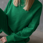 Sweater: Crew neck, long sleeves and a ribbed hem and cuffs.