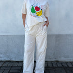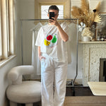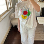 Beth (Aus size 14) wears a size L with our Adult Farmer's Market Relaxed Tee in White
