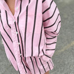 Women's Isla Stripe Cotton Set - Pink/Chocolate Stripe