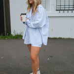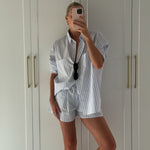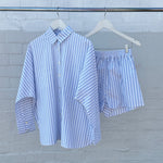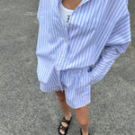 Women's Isla Stripe Cotton Set - White/Blue Stripe