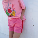 Sandy (Aus size 8) wears a size S, styled with our Adult Farmer's Market Tee in Bubblegum
