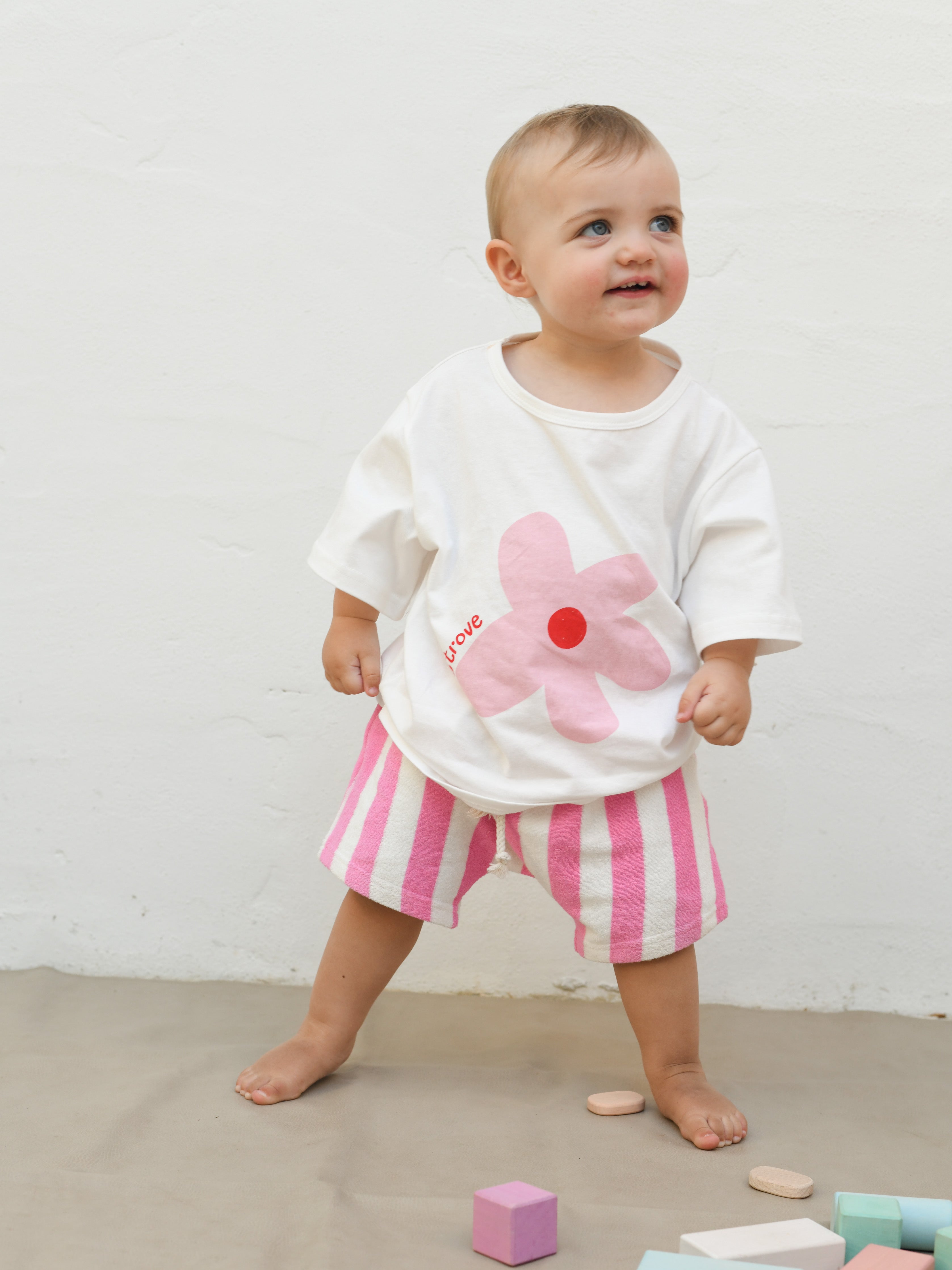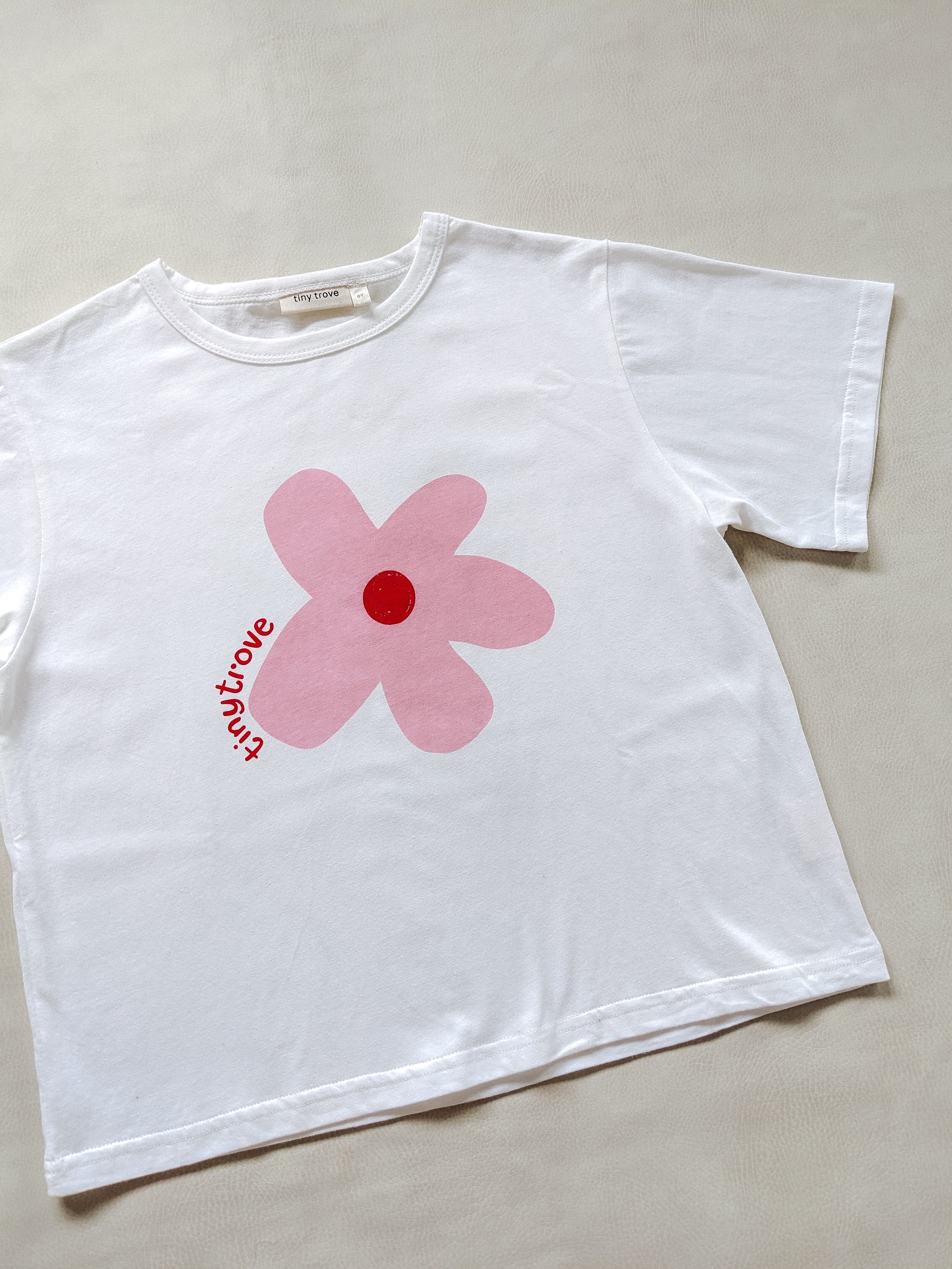 Matching adult tee Adult Faye Relaxed Flower Tee - White/Pink
