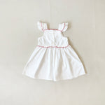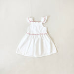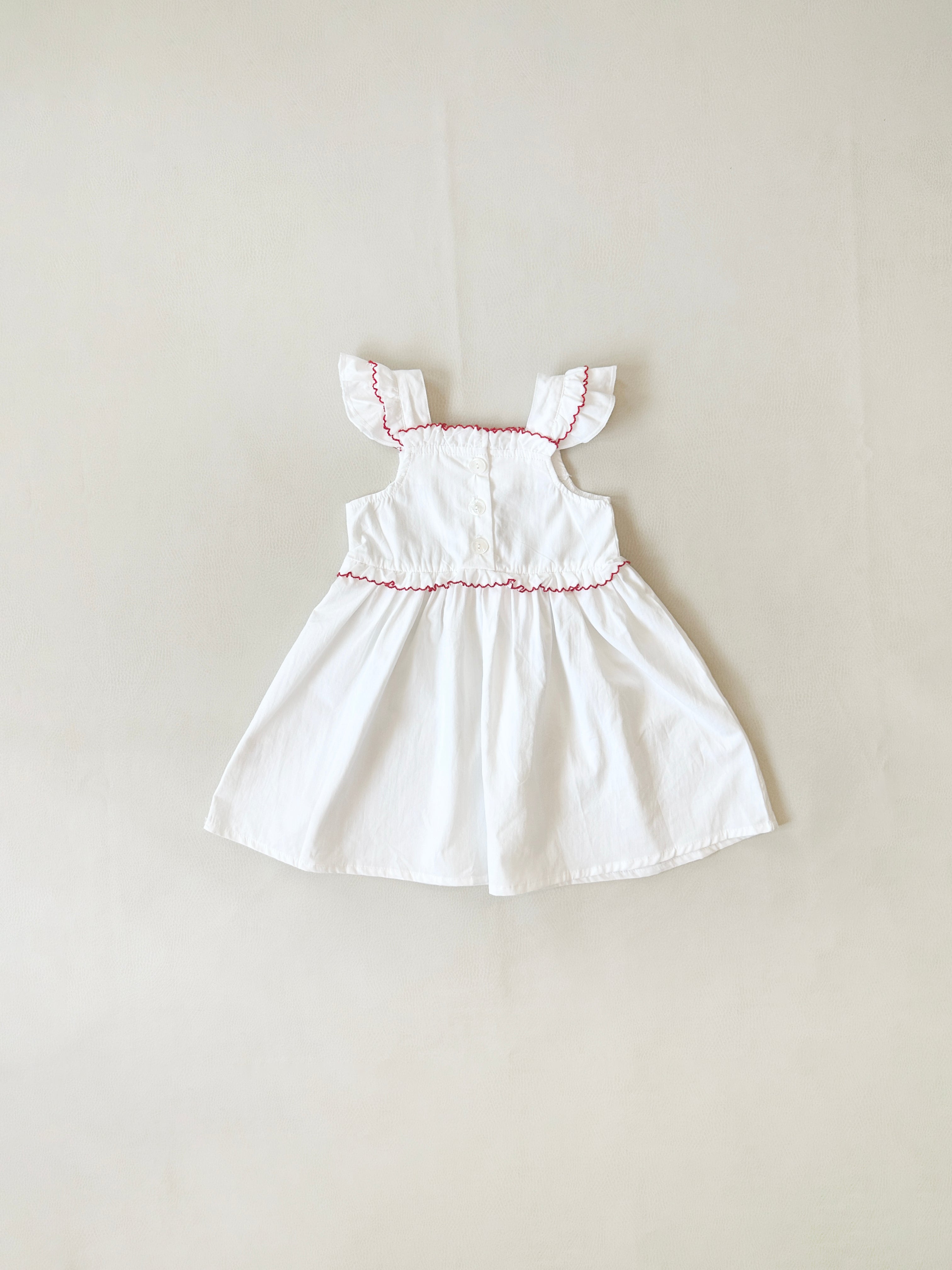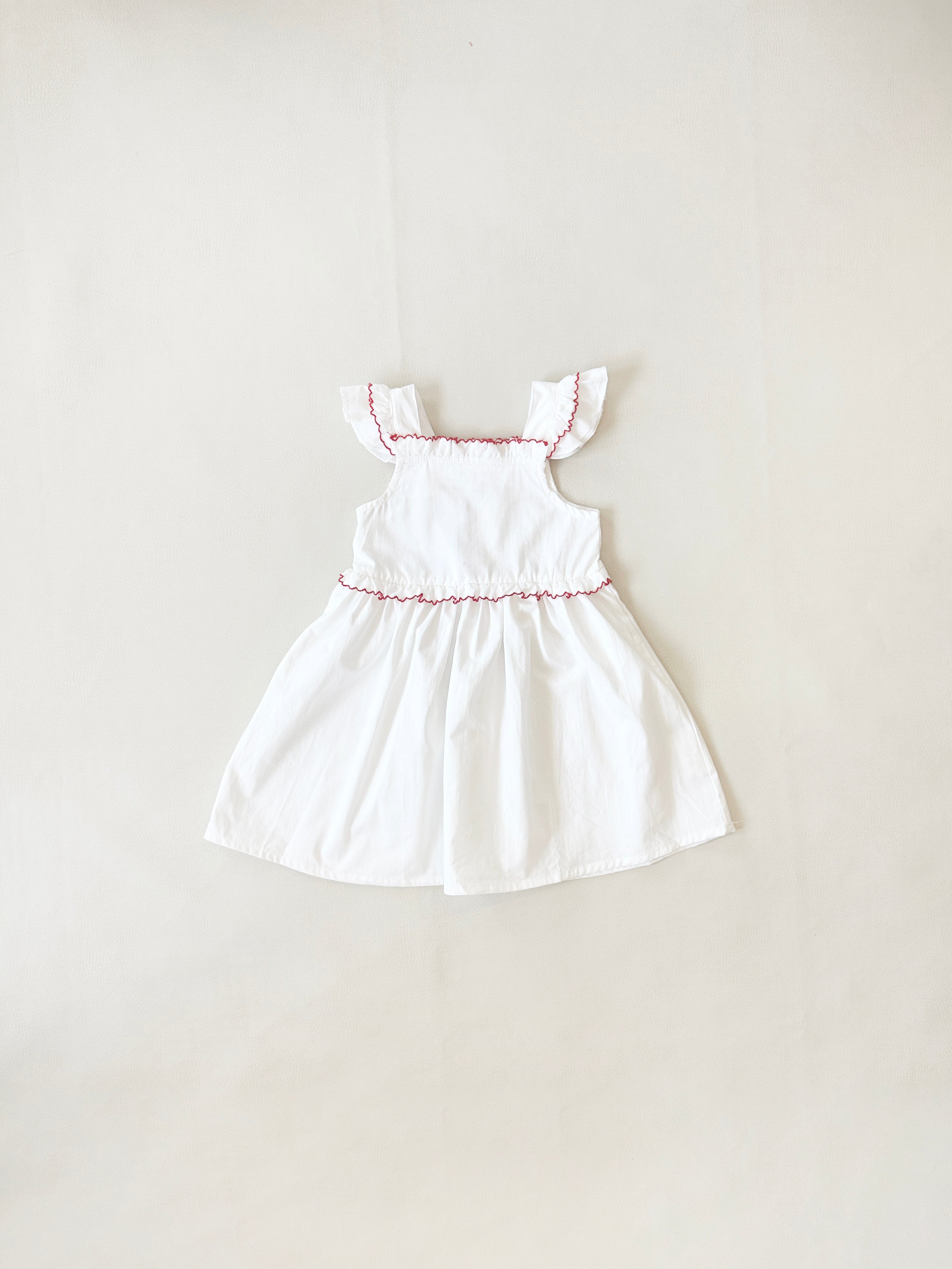 The cutest dress you've ever seen has just arrived! Perfect for any summer occasion (and every day after!) the Harriet Dress is made from 100% cotton, and features a red embroidered ruffle trim.