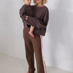 Match with your mini - shop the kid's Elio Cotton Racer Pants in Chocolate/Pink