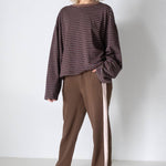 Styled with our Women's Rhode Stripe Cotton Long Sleeve Tee in Mocha Stripe