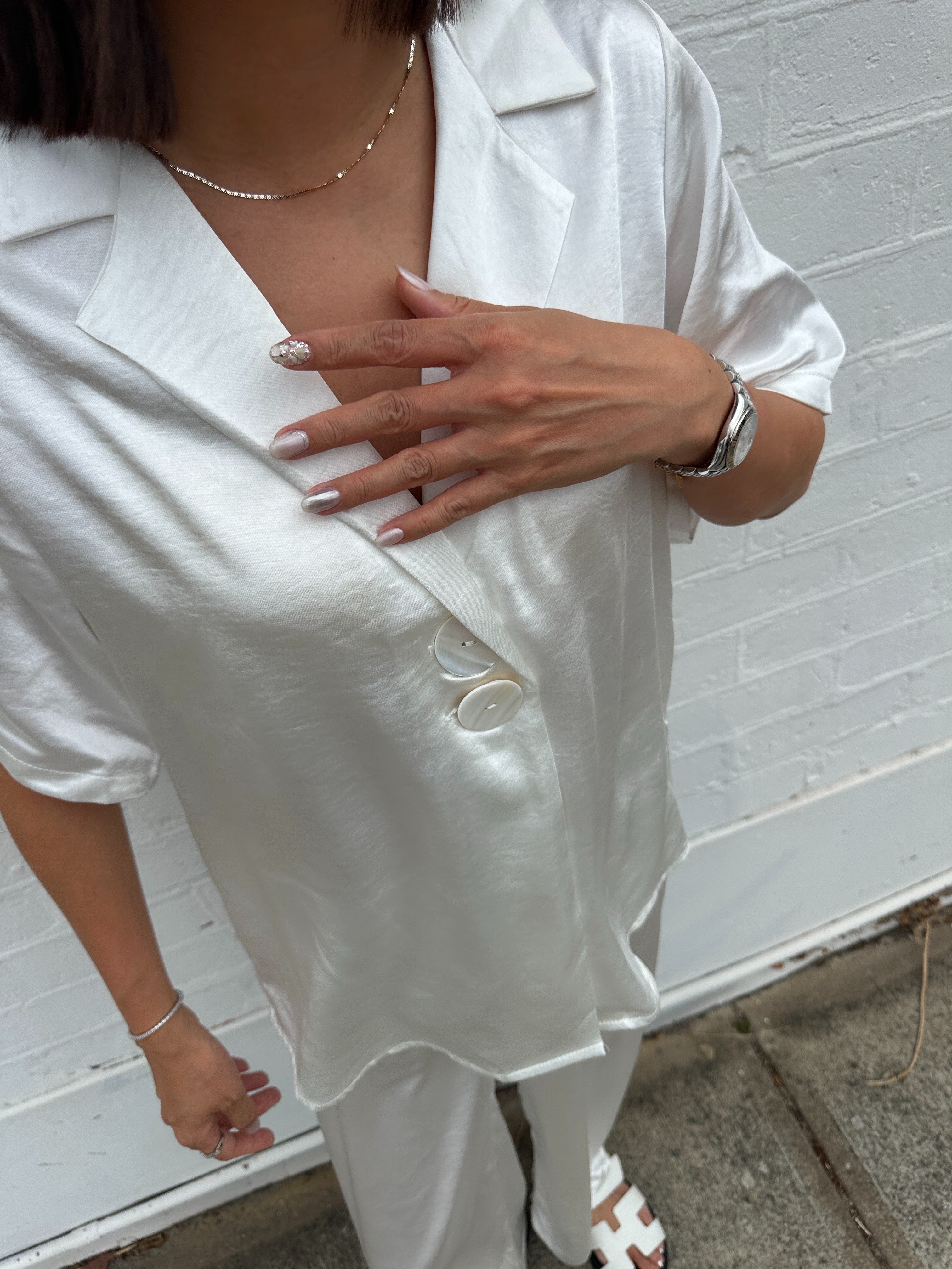 Silk sets come and go through the seasons but this will be staying in your wardrobe for years to come. From the beautifully considered shell buttons that add a certain je ne sais quoi you will be either wearing these pieces together for a polished day to night look or wearing them as solid separates. Pair your pants with a knitted jumper through the cooler months or pair the top with an interesting pair of pants. This will also be a perfect addition to a pre/post wedding event! Thanks for this permanent wardrobe piece TT. I will be wearing it for years to come!