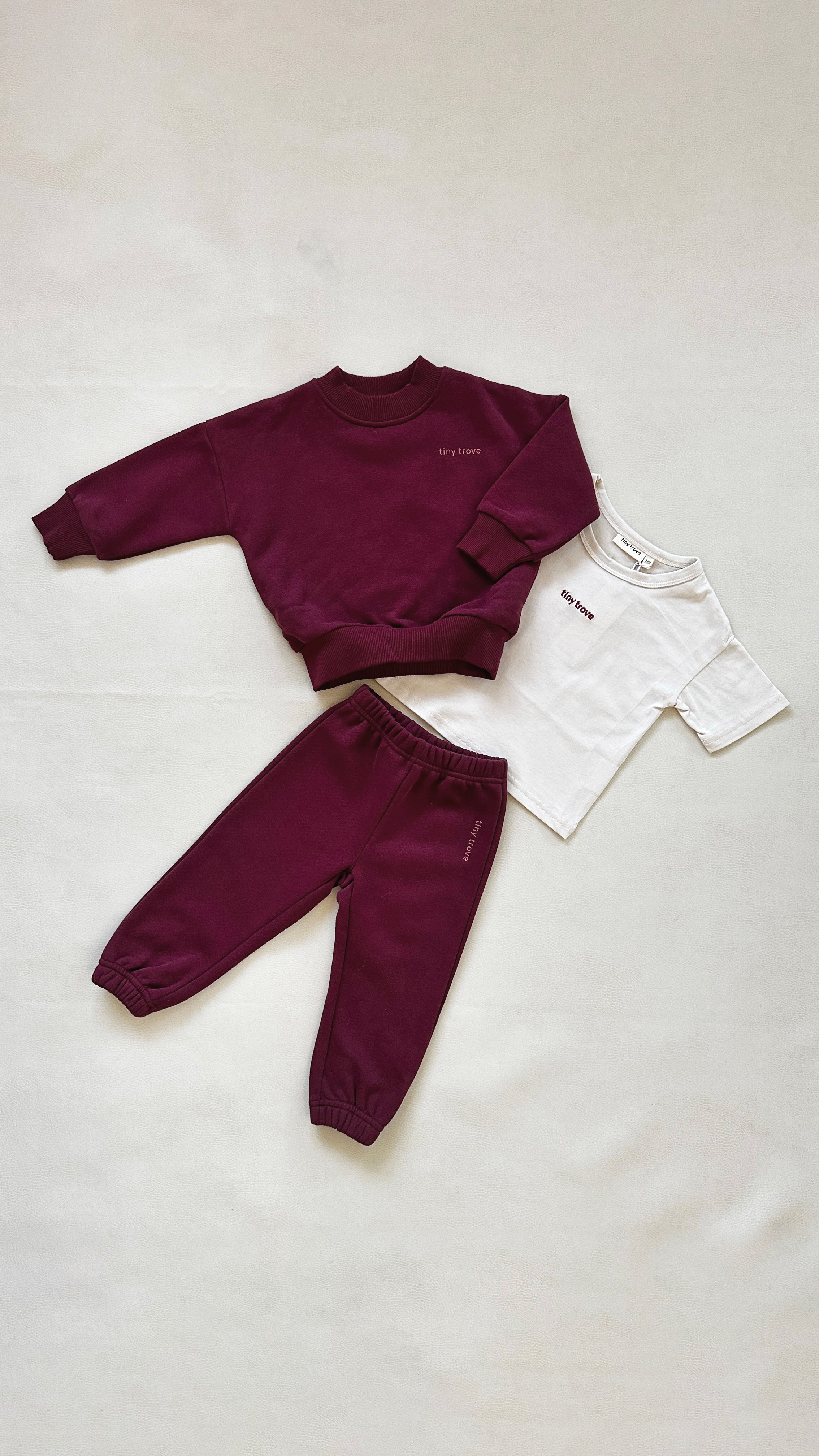 Pants: Elasticated waistband, a slip-on style, a straight leg and fitted cuffs.