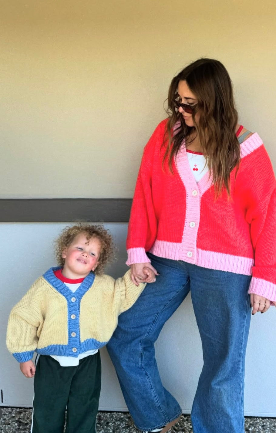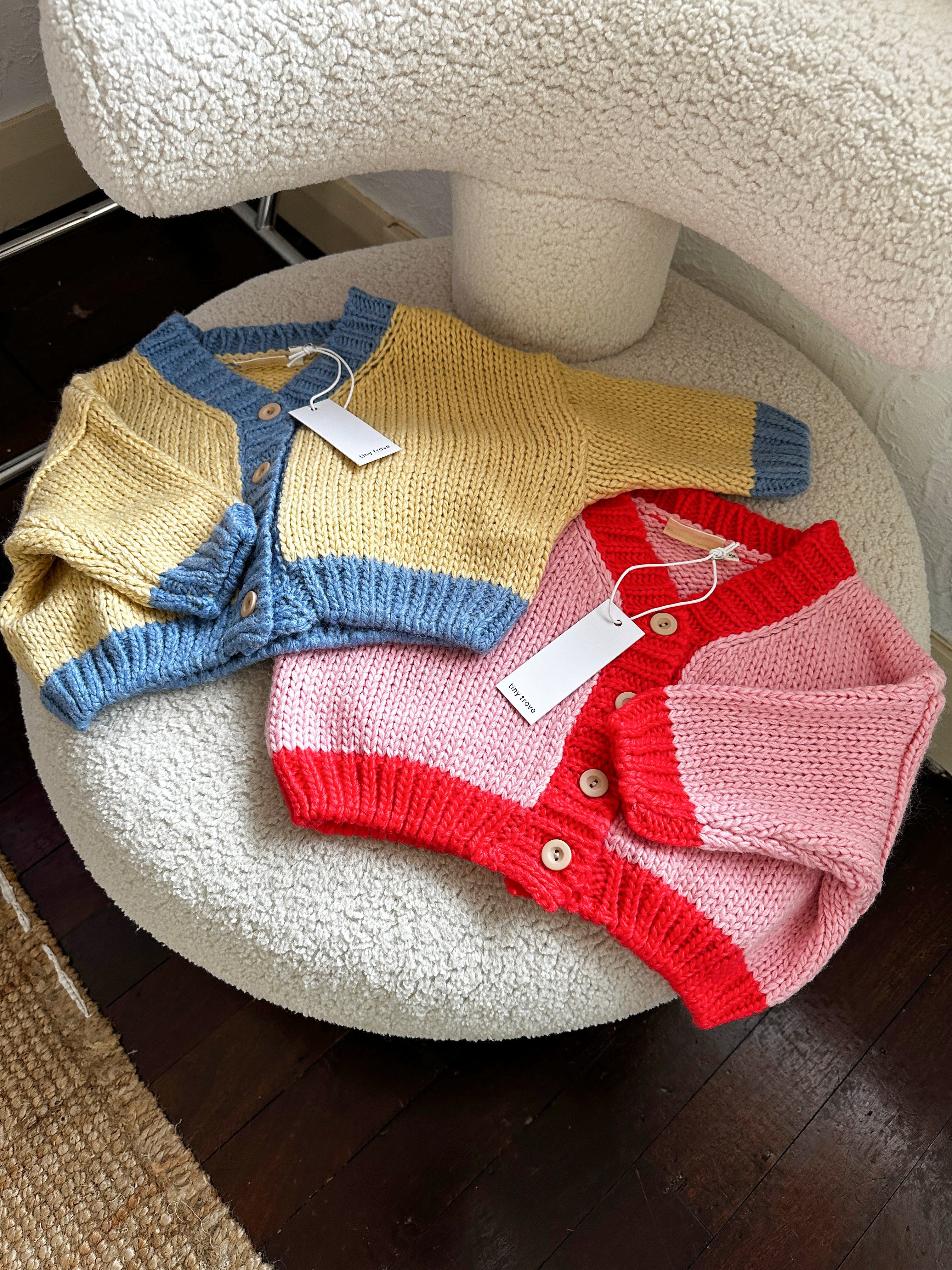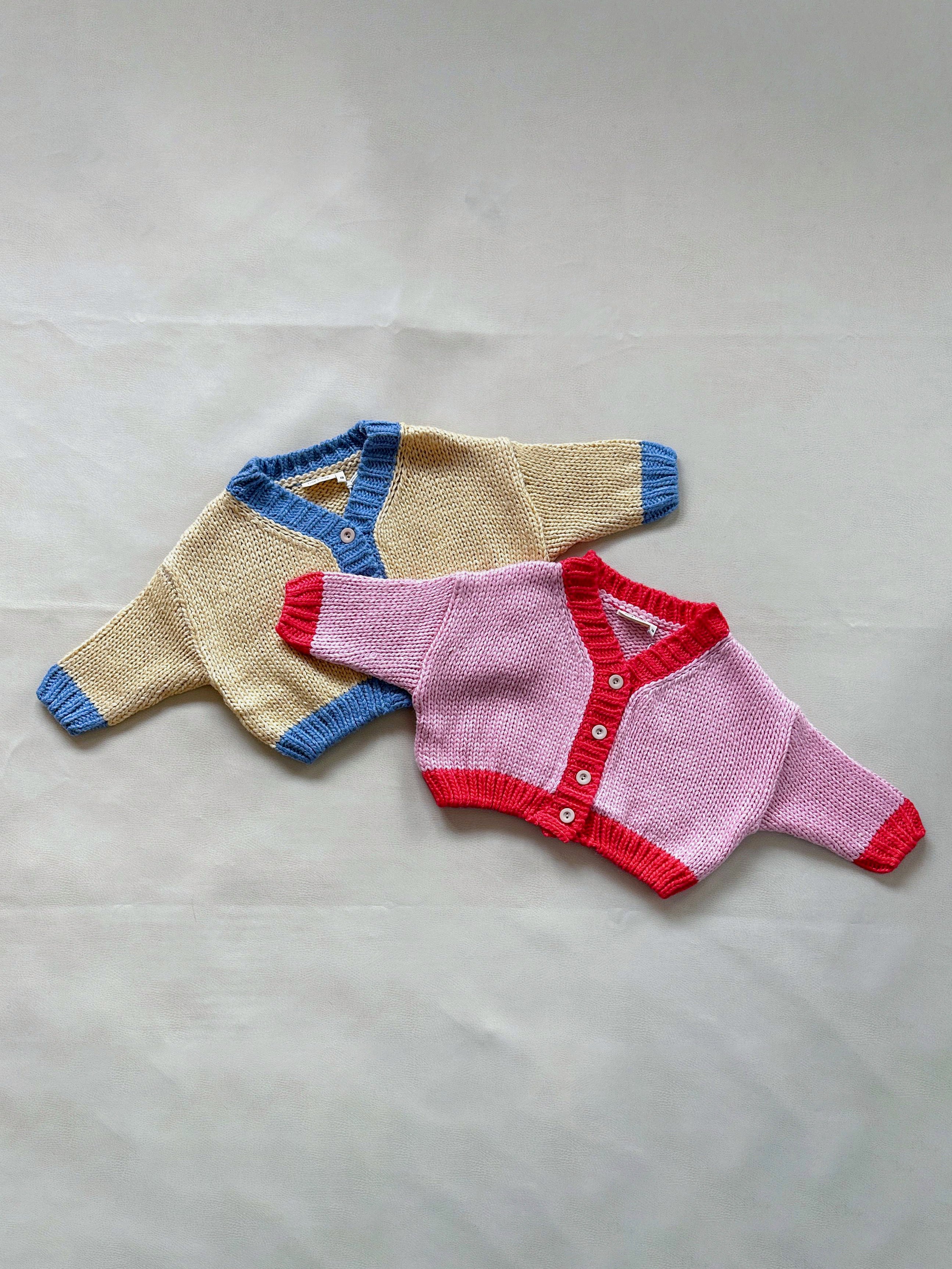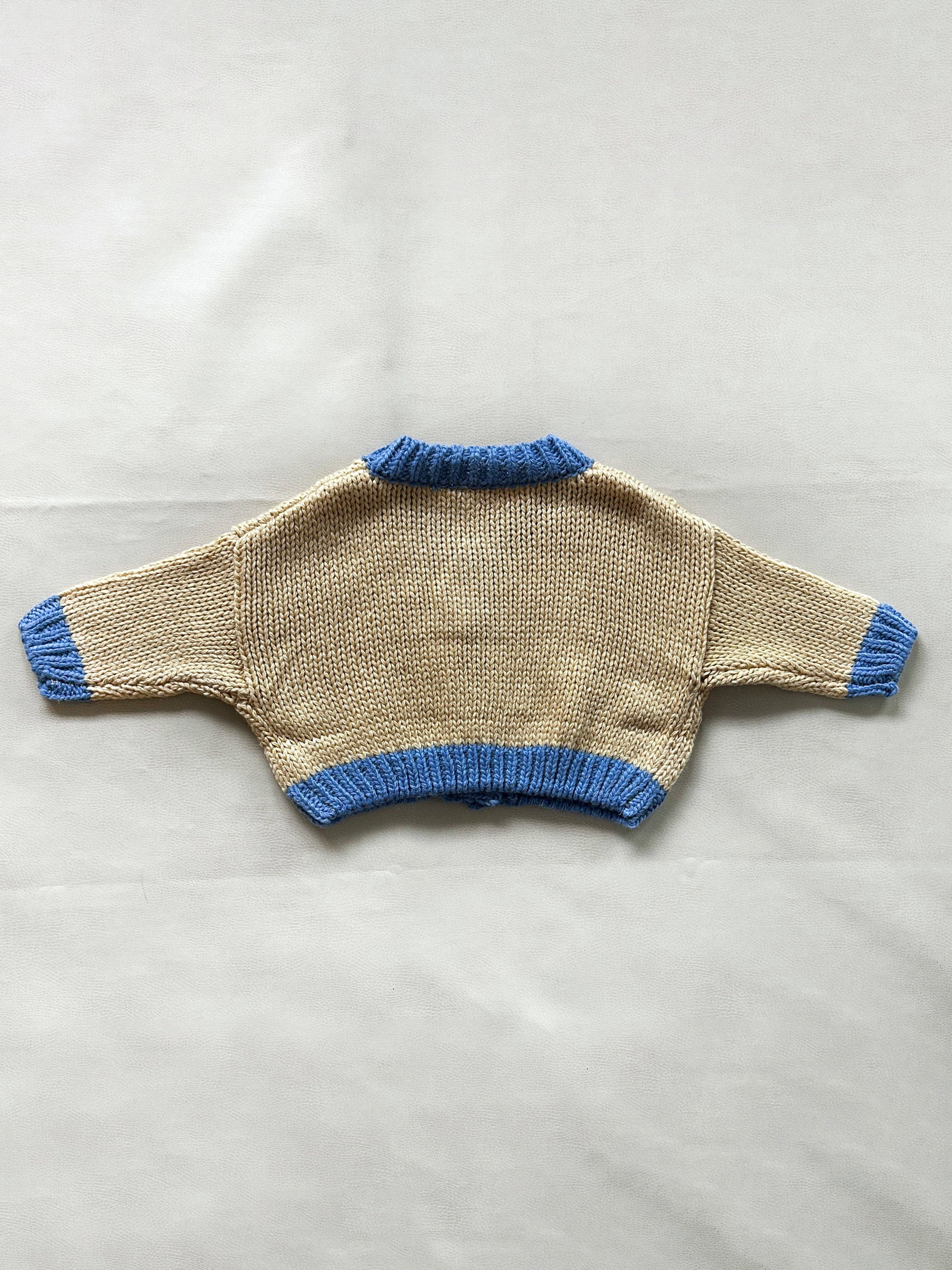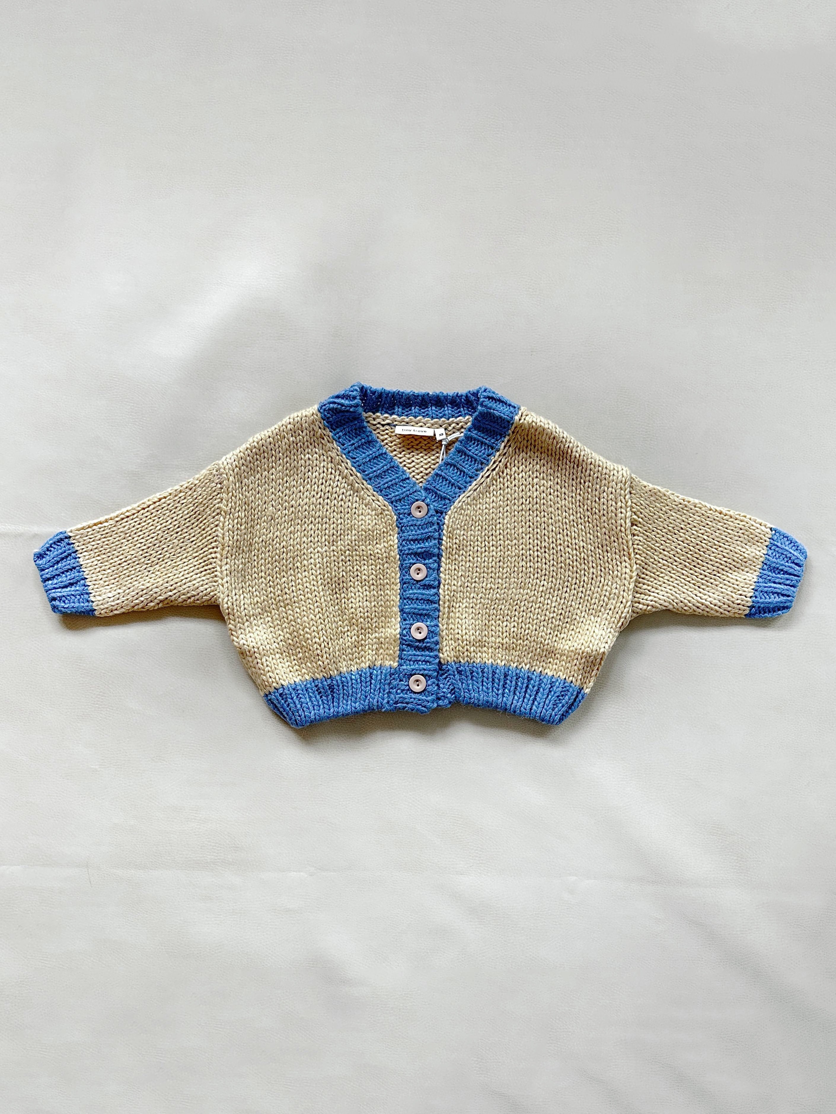 Zuri Contrast Knit Cardigan - Cream/Blue